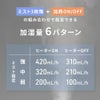 加湿6段階(ヒーター含む)、節電モード(ヒーターOFF)、湿度設定:40 ~ 75%(5%単位)