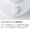 ダイヤル式の運転切替スイッチで、風量を直感的に調節可能。スイッチ右側は左右首振りを稼働できます。風量は使用シーンに応じて3段階(弱・中・強)で設定可能です。