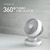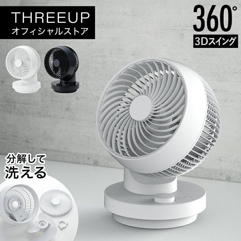 前方から真上にかけて360°全方位に風を届けられます。左右方向には台座が60°回転するので、360°回転機能と併用することで立体的な送風が可能です。